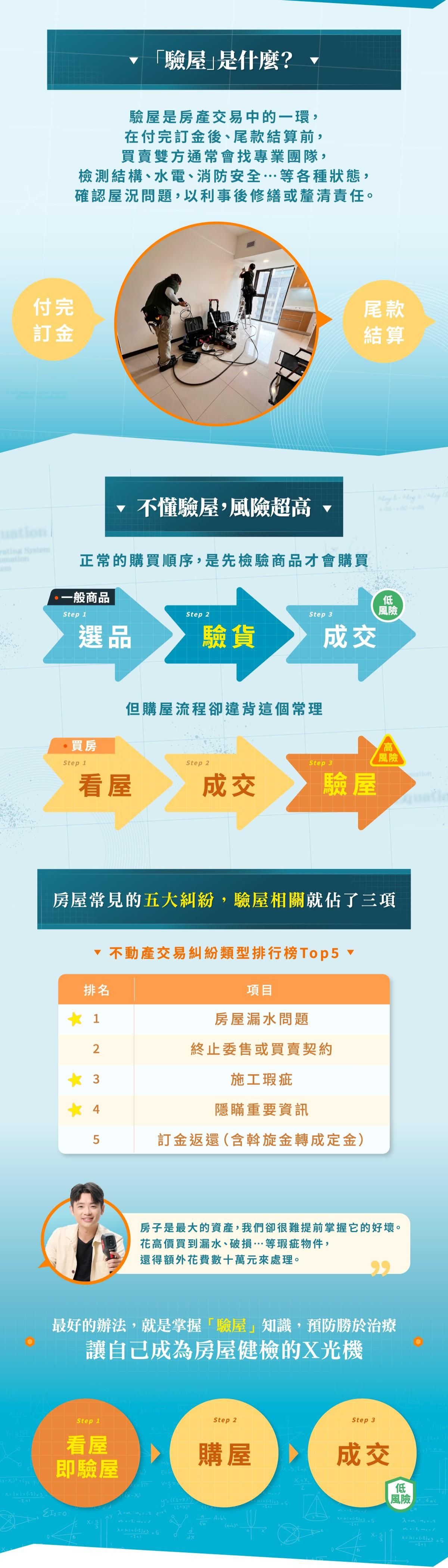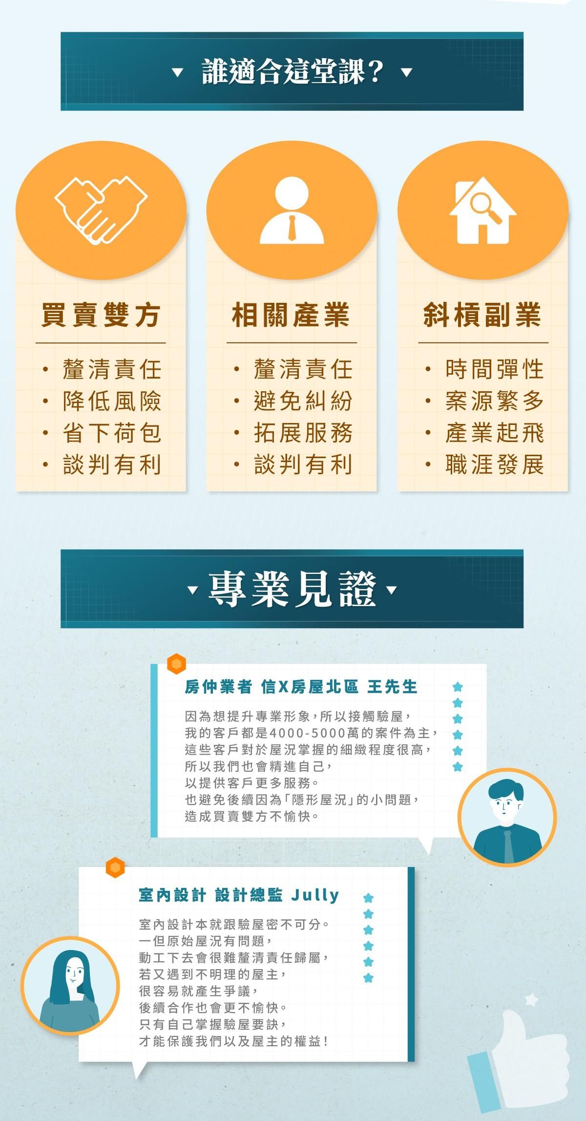 學會看懂房屋的底層邏輯,不管是自住買房前避開風險、還是房屋相關業者(房仲、包租代管、裝潢業者,學會都能替自己的專業加分!不只是驗屋師才需要,而是每個人都要學會的必備技能